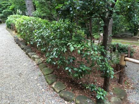 9月 ツバキ類の軽剪定 ヒサカキの刈り込み 枯れ流れの除草、清掃